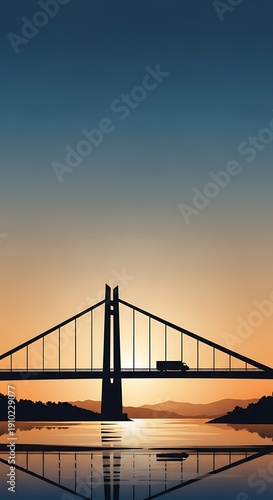 © lomi, Obraz premium Sunset over a large bridge.