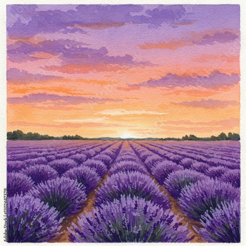 © Andriy, Obraz premium Sunset Over a Lavender Field