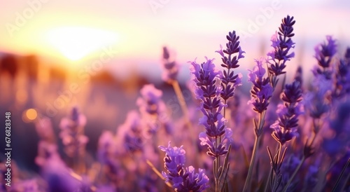 © Евгений Кобзев, Fototapeta premium Sunset over a lavender field.