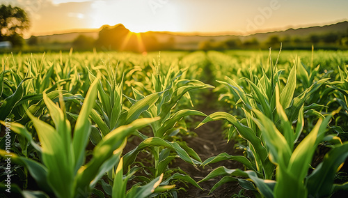 Obraz premium Sunset Over a Lush Cornfield