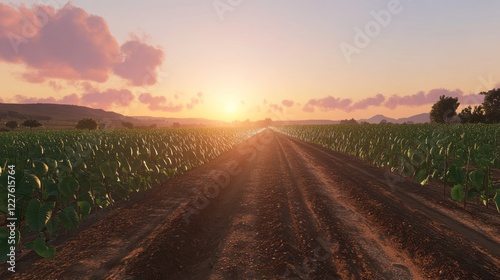 © yusufadi, Naklejka premium Sunset over a Lush Green Field