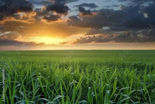Fototapeta premium Sunset Over a Lush Green Field