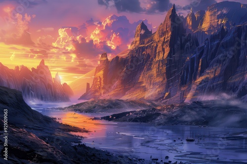 Fototapeta premium Sunset Over a Mystical Mountain Range