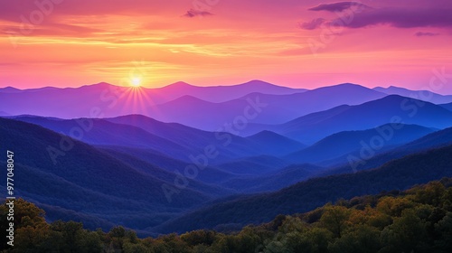 © otwdesign, Fototapeta premium Sunset Over A Range Of Blue Ridge Mountains