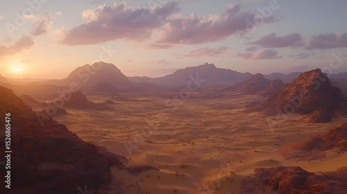 © Trippple, Naklejka premium Sunset Over a Rocky Desert Landscape