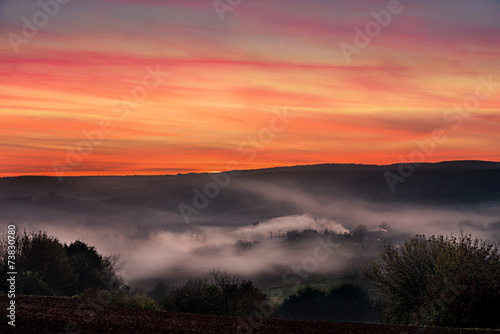 © tomaspic, Fototapeta premium Sunset over a valley during autumn