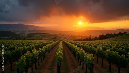 Fototapeta premium Sunset over a vineyard a picture of tranquility