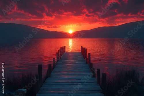 © Natti, Obraz premium Sunset over a wooden pier by the calm sea