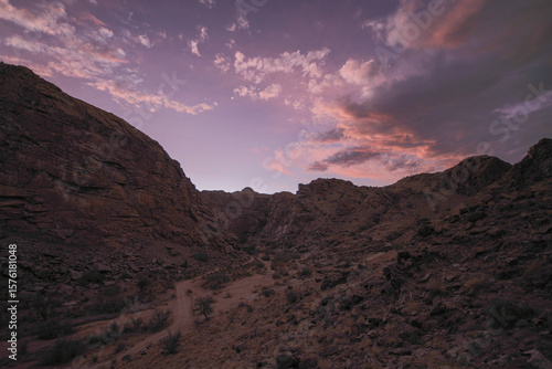 © John, Fototapeta premium Sunset over an arid canyon with pretty clouds