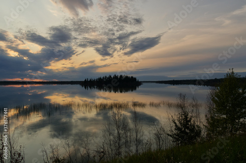 Obraz premium Sunset over Astotin Lake, Elk Island National Park