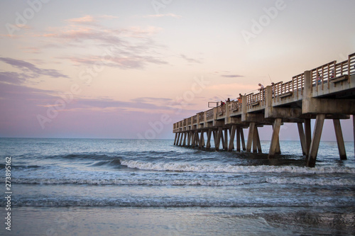 © Jazmine, Fototapeta premium Sunset over Atlantic ocean with pier