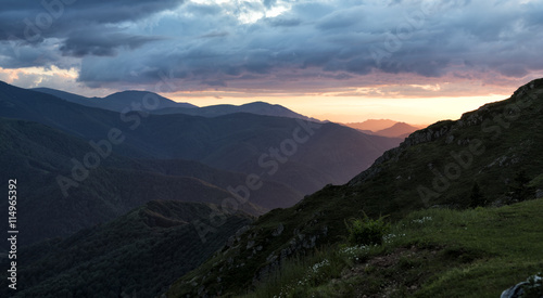 © georgigerdzhikov, Obraz premium Sunset over Balkan mountain, Bulgaria