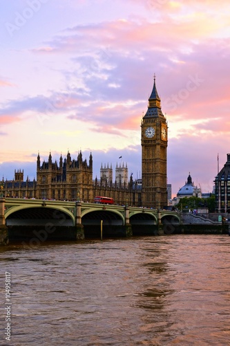 © Jenifoto, Naklejka premium Sunset over Big Ben and the Parliament buildings across the River Thames, London, England