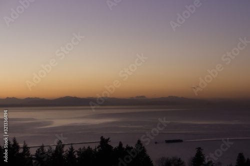 © andy, Fototapeta premium Sunset over boats in the Vancouver bay