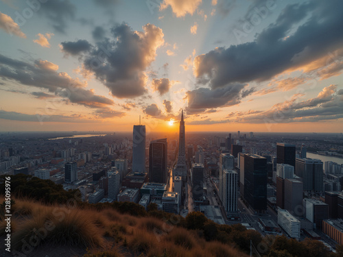 © Teepakorn, Naklejka premium Sunset over building