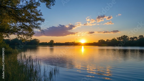 Obraz premium Sunset over calm lake. Nature landscape photography.