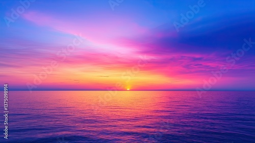 Fototapeta premium Sunset over calm ocean waters coastal viewpoint landscape photography tranquil environment serene atmosphere