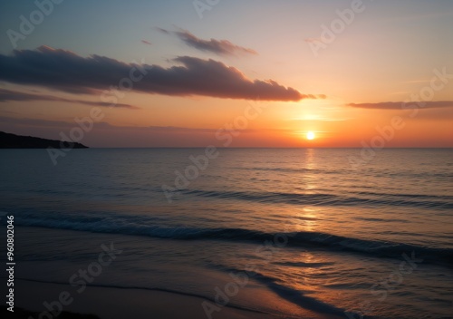 Fototapeta premium Sunset Over Calm Ocean Waves