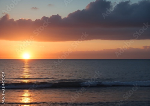 © Rezhwan, Obraz premium Sunset Over Calm Ocean Waves