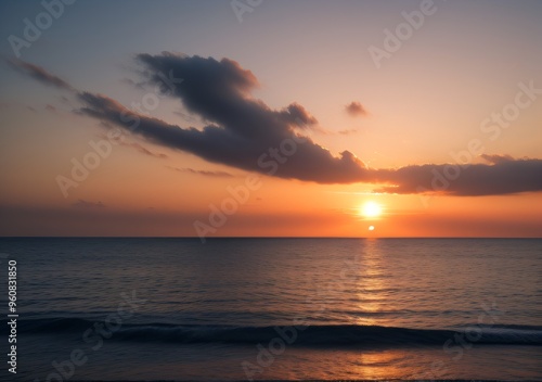 Fototapeta premium Sunset Over Calm Ocean Waves