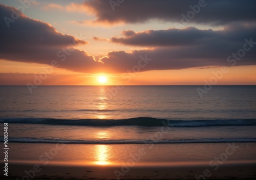 © Rezhwan, Obraz premium Sunset Over Calm Ocean Waves