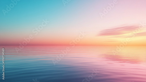 Obraz premium Sunset over calm ocean with gradient sky, serene background
