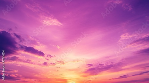 © YanabY, Fototapeta premium Sunset over calm ocean with vibrant purple and orange sky at dusk