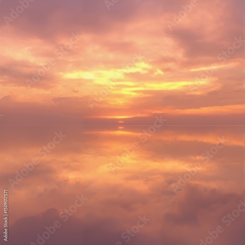 © jiayi, Fototapeta premium Sunset Over Calm Water with Golden Sky Reflection