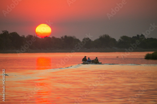 Naklejka premium Sunset over Chobe River between Namibia and Botswana, Southern Africa.