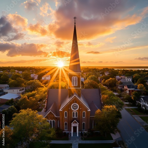 © KOOLAIDMAN100X, Fototapeta premium Sunset over church steeple