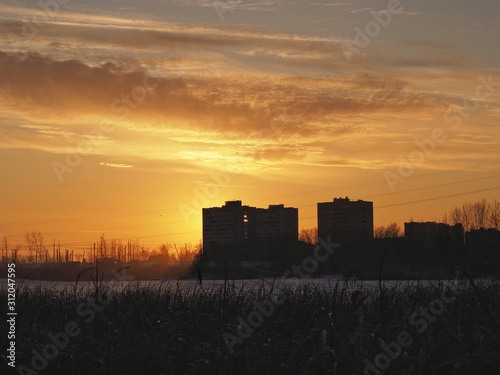 © Aleksandr, Fototapeta premium sunset over city