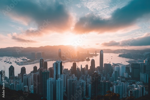 © rushay, Obraz premium sunset over city