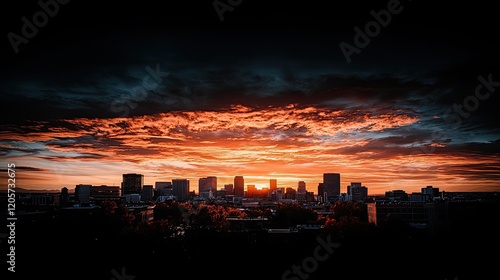 © Sasikharn, Fototapeta premium Sunset over city skyline urban landscape view