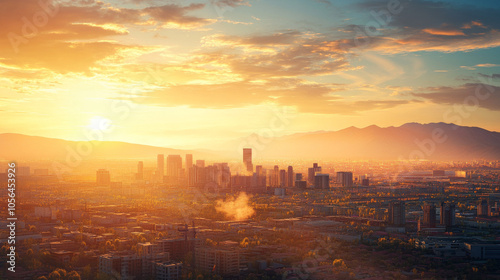 © Killian, Fototapeta premium Sunset Over City Skyline with Mountains