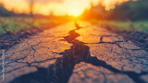 © Diegeme, Obraz premium Sunset Over Cracked Earth