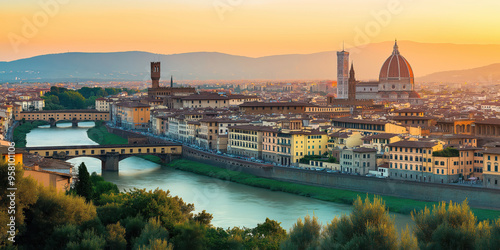 Fototapeta premium Sunset over florence: capturing the beauty of historical architecture and river arno