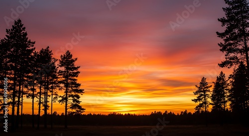 Fototapeta premium sunset over forest, warm glow
