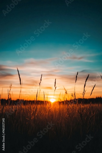 © MaxStock, Fototapeta premium sunset over golden grass