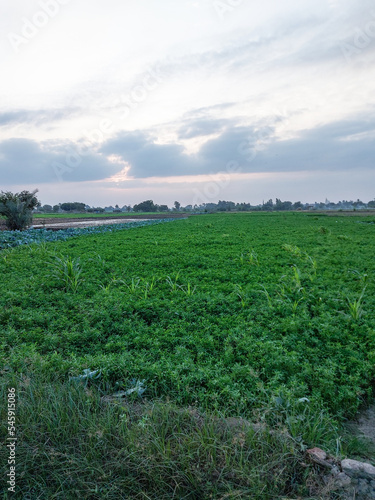 Obraz premium Sunset over green fields countryside - Egypt