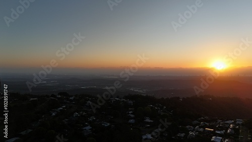 © Wirestock, Obraz premium Sunset over hills and city skyline