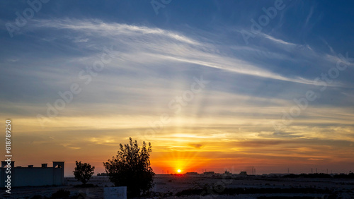 Obraz premium Sunset over horizon with clouds.