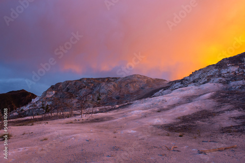 Naklejka premium Sunset over hot spring
