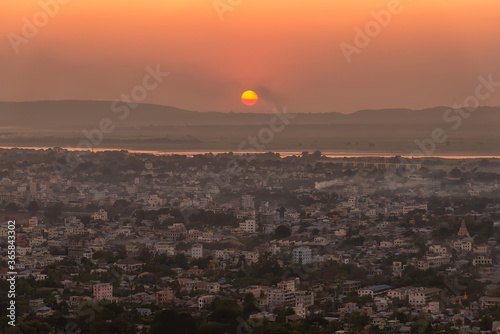 Obraz premium Sunset over Irrawaddy river and Mandalay city, Myanmar. Mandalay is the...