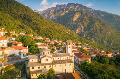 Fototapeta premium Sunset over Konitsa and Pindus Mountains, Greece