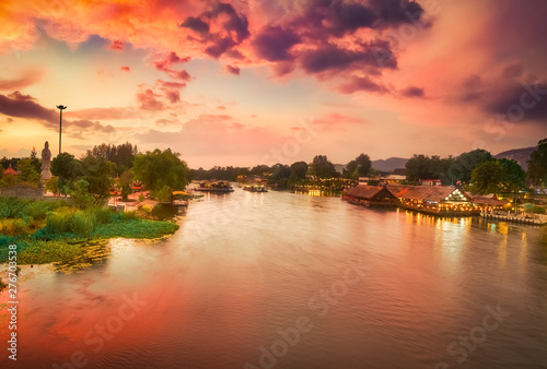 Obraz premium Sunset over Kwai river, Kanchanaburi, Thailand.