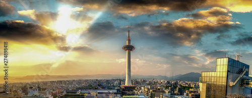 Fototapeta premium Sunset over Kyoto. City tower and skyline