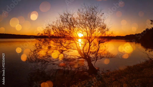 Naklejka premium sunset over lake