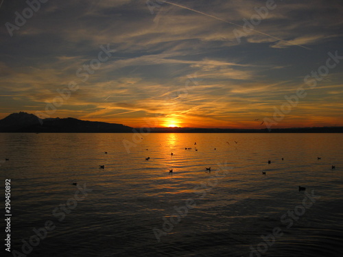 © Mindaugas, Obraz premium sunset over lake