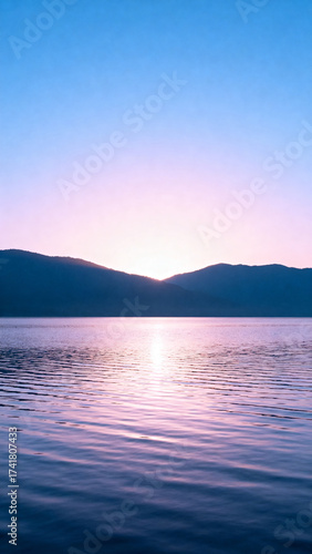 © Erin, Fototapeta premium Sunset over lake and mountains