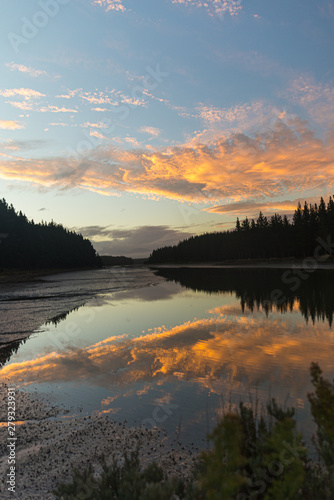 © Jack, Fototapeta premium sunset over lake crazy orange sky
